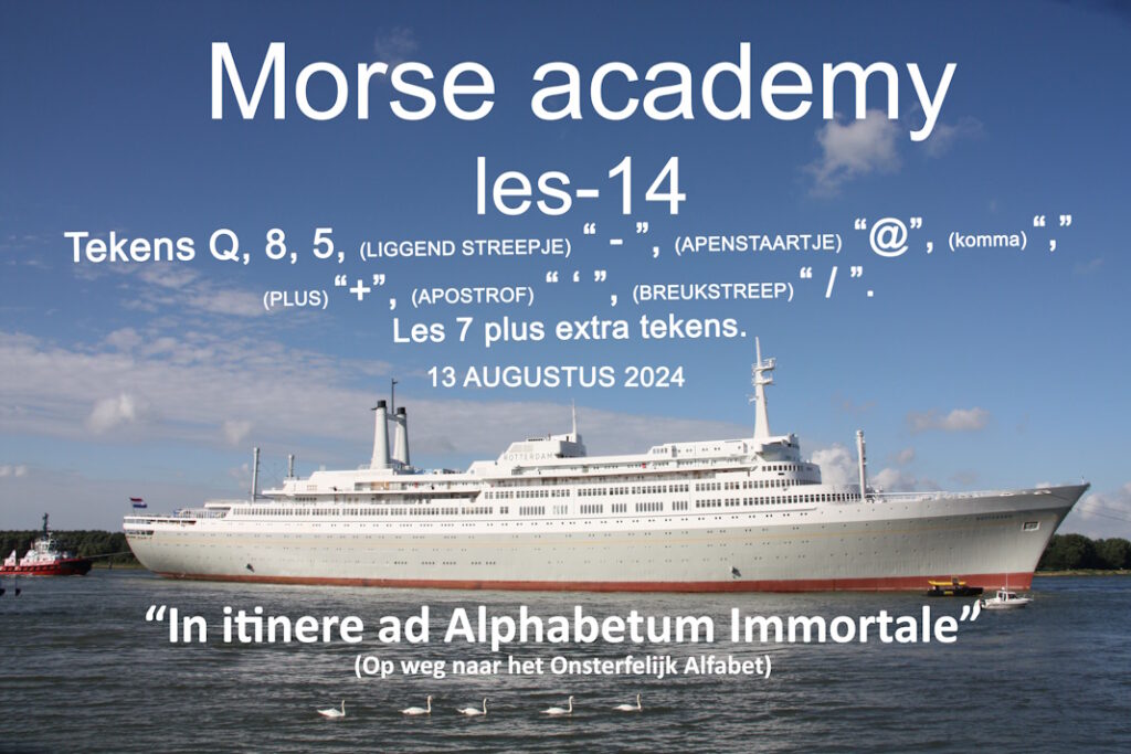Morse Academy les 14 (13-8-2024) 13 augustus 2024 Laatst geüpdatet : 13 augustus 2024 PA3FQH Luister hier de morse les van Hans, PA3GXB terug van 13 augustus 2024
