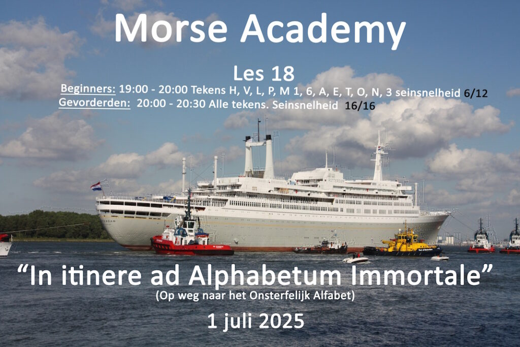 Morse Academy les 18 (01-07-2025) 2 juli 2025 Laatst geüpdatet : 2 juli 2025 PA3FQH Luister hier de morseles van 1 juli 2025 van PA3GXB terug