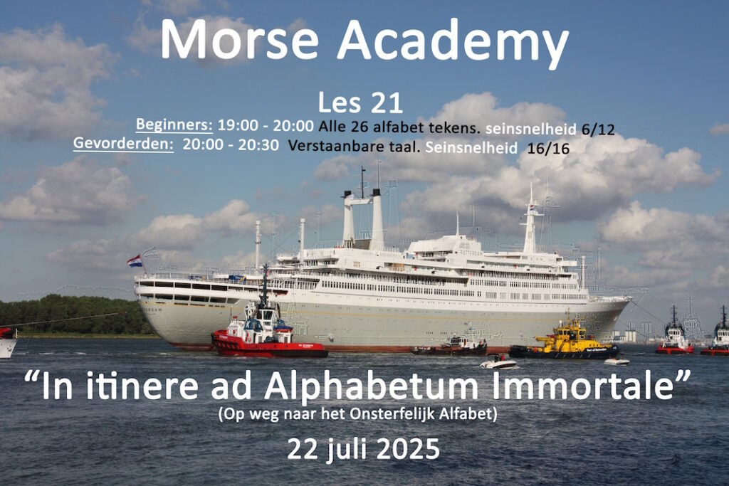 Morse Academy les 21 (22-07-2025) 22 juli 2025 Laatst geüpdatet : 22 juli 2025 PA3FQH Luister hier de morseles van 22 juli 2025 van PA3GXB terug