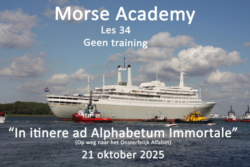 Morse Academy les 34 (21-10-2025) 28 oktober 2025 Laatst geüpdatet : 28 oktober 2025 PA3FQH Deze les is door omstandigheden niet door gegaan
