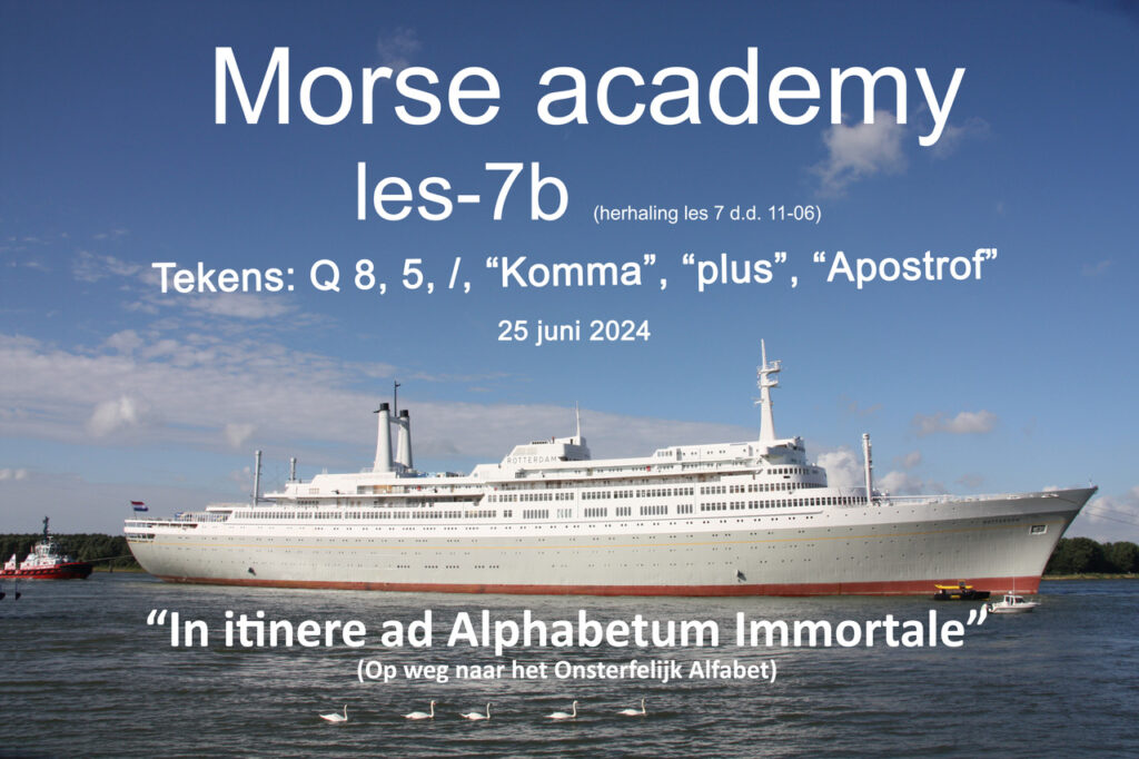 Morse Academy les 7b (25-6-2024) 25 juni 2024 Laatst geüpdatet : 25 juni 2024 PA3FQH Luister hier de morse les van Hans, PA3GXB terug van 25 juni 2024
